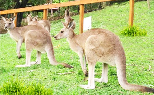 小袋鼠很喜歡親近人,絲毫沒有懼怕。可以采摘新鮮的樹葉喂食,伸過萌萌的小爪子抱過樹葉大快朵頤。