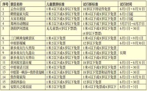 河南省16家景區下月起嘗試按年齡賣兒童票