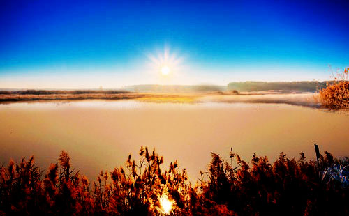 湖傍金沙,沙環碧湖,沙水相連,巧奪天工。曾有歌詞如此贊嘆秋日沙湖之美:“金綢子沙灘,銀綢子水。”秋日沙湖,天空湛藍,奶白的云彩大朵大朵的漂浮著,像是游動在天空的魚兒。而陽光雖明媚如夏,帶來的卻是剛剛好的溫暖,你不會覺得冷更不會覺得熱。點綴于湖中的蘆葦像是開啟了美顏模式,金燦燦的如同熟透了的麥穗,湖水在藍天的映襯下顯得格外通透波粼,在午時還是碧綠清透的湖水卻在天色漸暗后變得蔚藍,猶如大海一般。